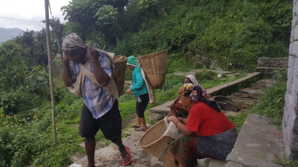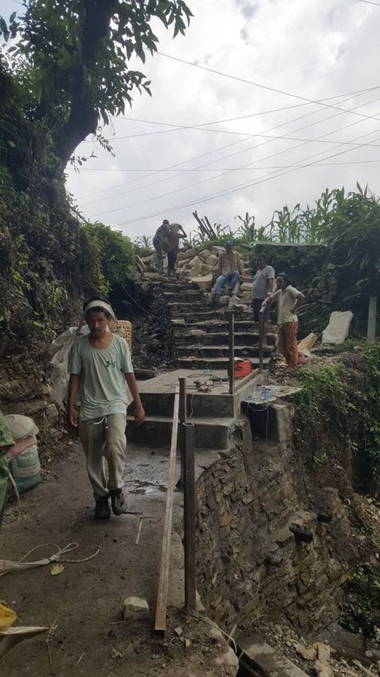 ल्वाङ गाउँको मुख्य पधेरो जाने बाटो निर्माण कार्यमा श्रम दान गर्दै ल्वाङवासीहरु!