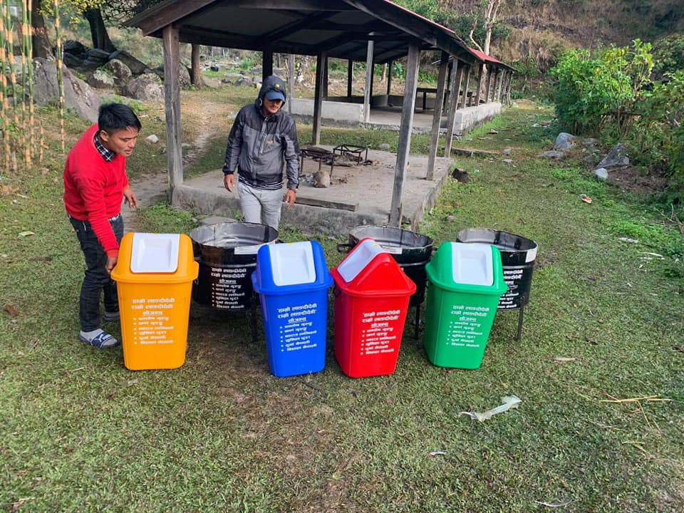 युवाहरु सन्तोष गुरुङ, कर्ण गुरुङ, नवराज लामिछाने, दुर्गा नेपाली, बिशाल नेपाली र सुनिल दुरा द्वारा नगद पन्ध्र हजार लागत खर्चमा ७ थान डस्टबिन किनेर मन्दिरको निम्ति प्रदान गरेकाछन्। बढ्दै गएको फोहोर ब्यबस्थापनको निम्ति र जथाभाबी फ्याकिएको फोहोर द्वारा प्रदुषण नहोस भन्ने हेतुले हामीले पहिलो प्रयास भनि यो सहयोग गरेको भन्ने जानकारी युवा सन्तोष गुरुङले हामीलाई जानकारी दिएका थिए।